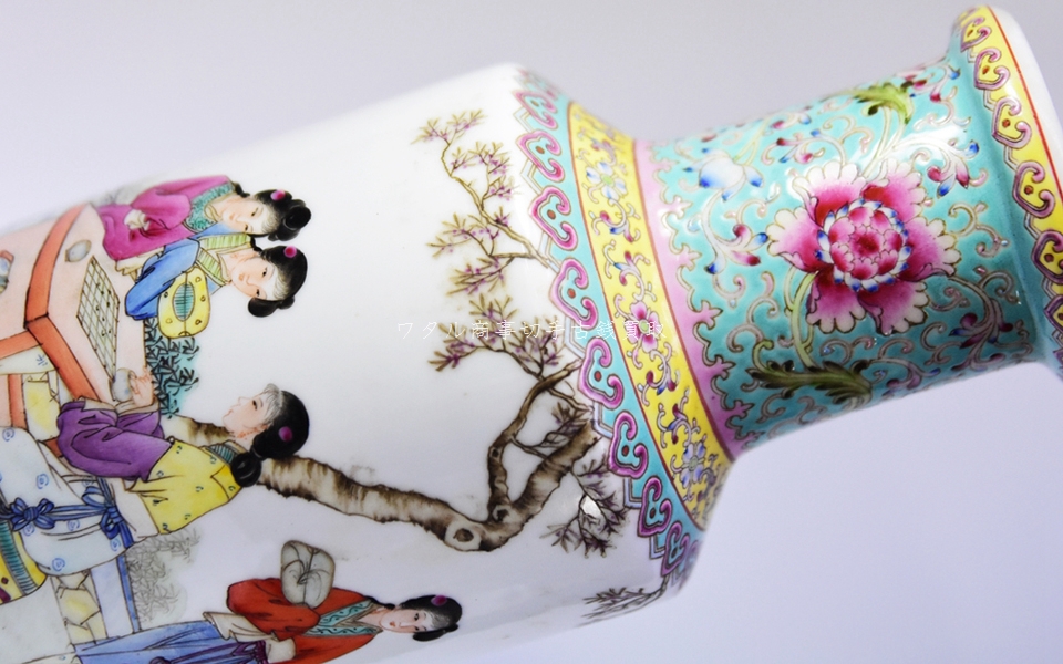 中国の焼き物、代表的の青花(元染・萬暦・大明年製、康煕年製、乾隆年製)、五彩、粉彩、青磁、白磁、琺瑯、景徳鎮、官窯、龍泉窯、近代の磁板画など。