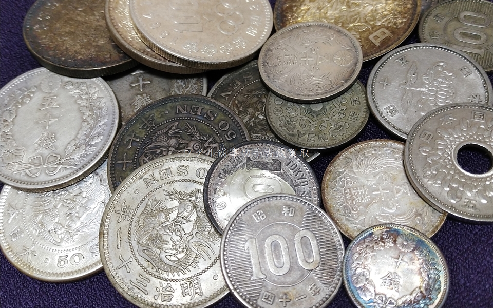 50銭・20銭・10銭・5銭・100円銀貨など。